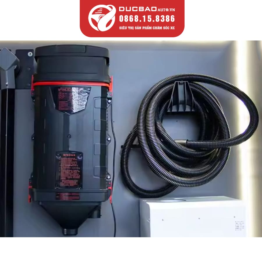 Sản phẩm bao gồm một máy chủ, một bộ giá đỡ kim loại hoặc nhựa, máy hút bụi, ống ren dài 7 mét, một vòi hút lớn và một miệng hút phẳng nhỏ. Các phụ kiện này hỗ trợ hiệu quả trong việc vệ sinh.